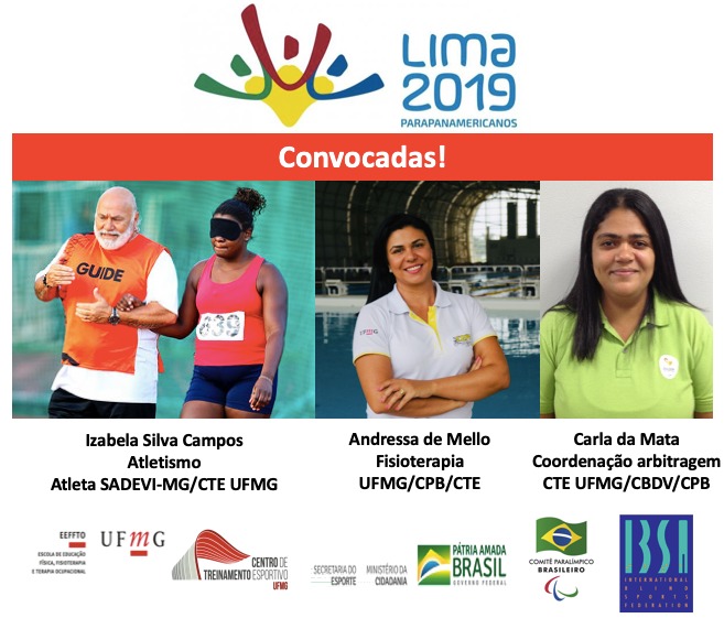 A atleta Izabela Silva Campos (atletismo) SADEVI-MG/CTE UFMG; a professora do Departamento de Esportes da EEFFTO Andressa Silva, convocada como Fisioterapeuta (UFMG/CPB/CTE) pelo CPB.